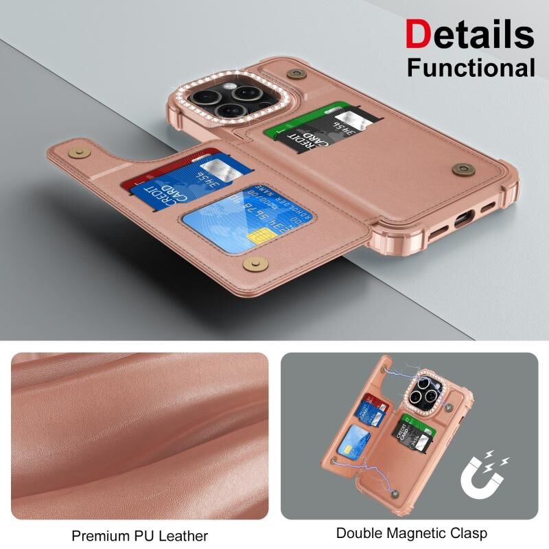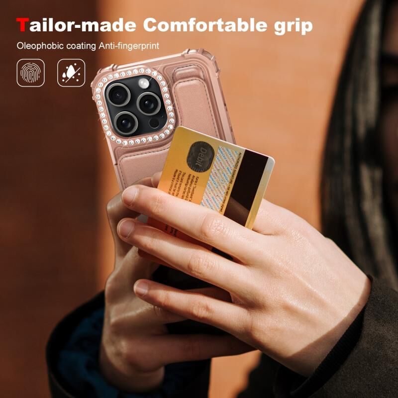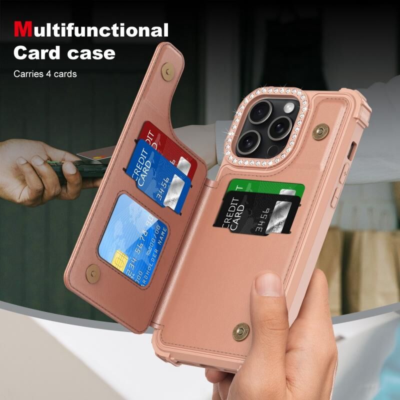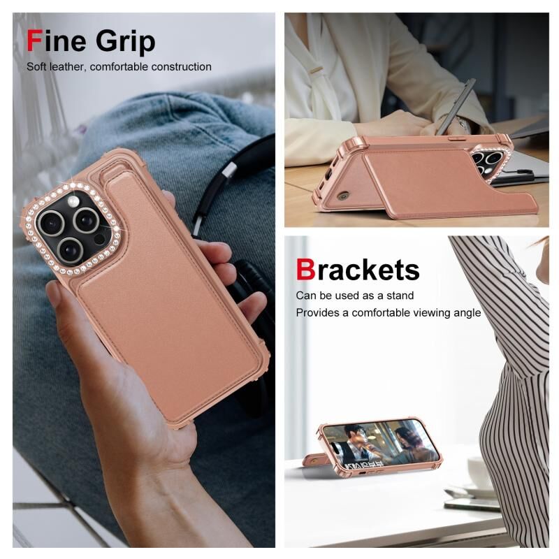 For iPhone 15 Pro Max Diamond Horizontal Card Bag Leather Phone Case(Rose Gold)