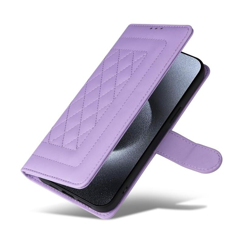 Θήκη για iPhone 15 Pro Max από Δερμάτινο Υλικό Diamond Lattice, Φλιπ (Λευκό)