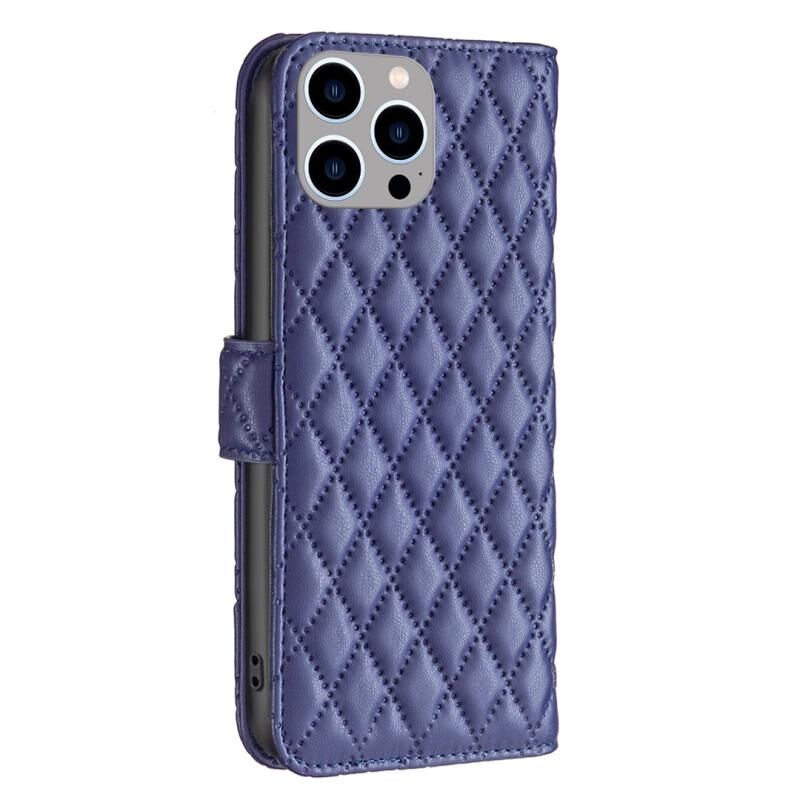 Θήκη τηλεφώνου τύπου πορτοφολιού με δερμάτινη επένδυση και σχέδιο διαμαντόπλεγματος για iPhone 15 Pro Max (Μπλε)