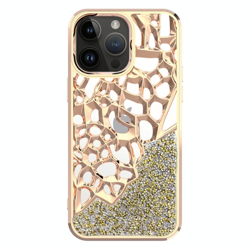 For iPhone 15 Pro Max Diamond Style Hollow Heat Dissipation Electroplated TPU Phone Case(Gold)