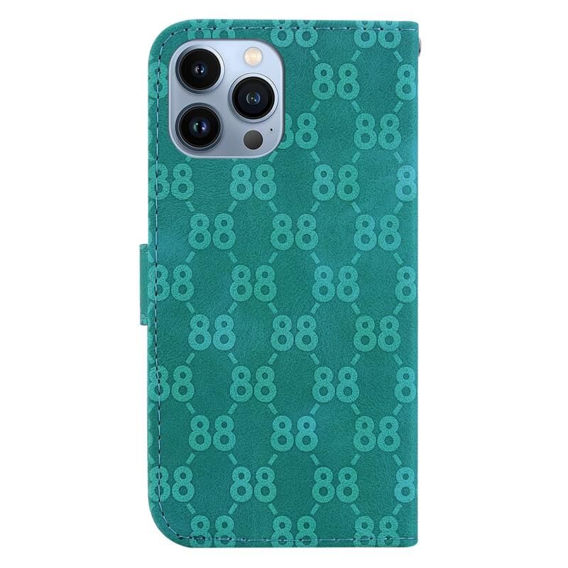 Θήκη τηλεφώνου από δέρμα με ανάγλυφο διπλό σχέδιο σε σχήμα 8 για iPhone 15 Pro Max (Πράσινο)