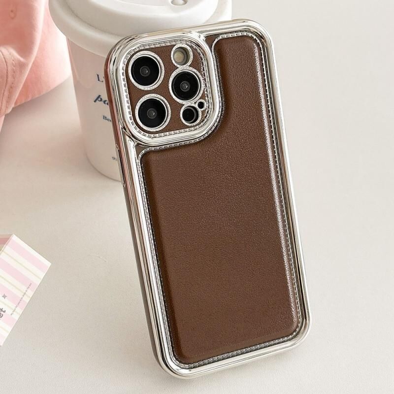 Θήκη τηλεφώνου από δέρμα TPU με ηλεκτρολυτική επένδυση και ματ φινίρισμα για iPhone 15 Pro Max (Καφέ χρώμα)