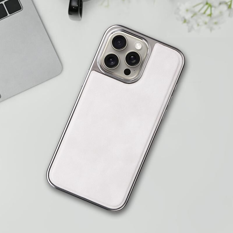 Θήκη τηλεφώνου για iPhone 15 Pro Max, υβριδική από PU και TPU με ηλεκτρολυτική επικάλυψη και MagSafe (Λευκό)
