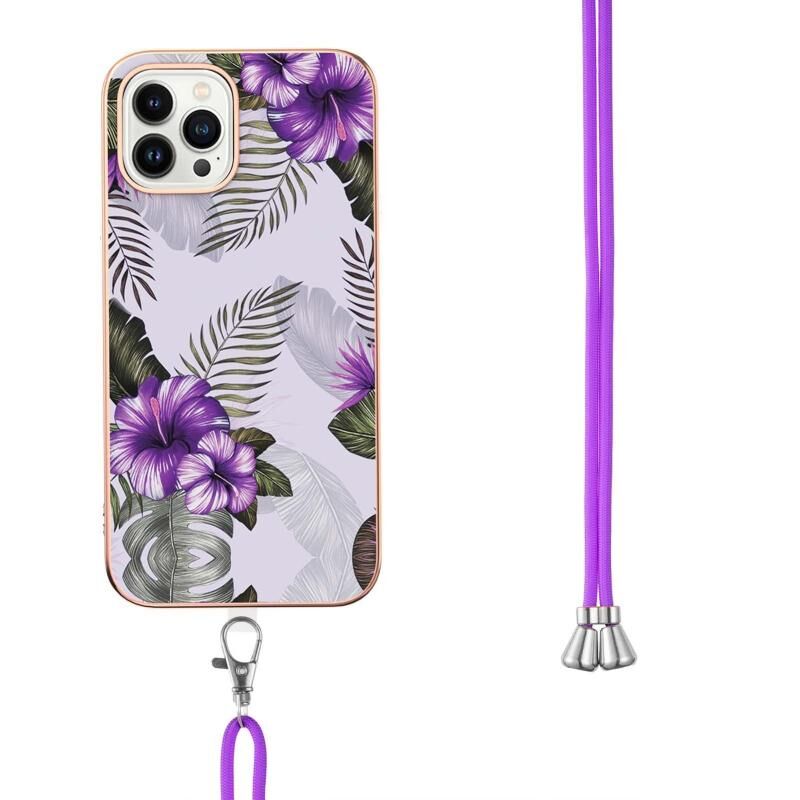 Θήκη για iPhone 15 Pro Max με σχέδιο ηλεκτρολυτικής επιμετάλλωσης IMD, αντικραδασμική από TPU με λουρί λαιμού (Ροζ Λέπια)