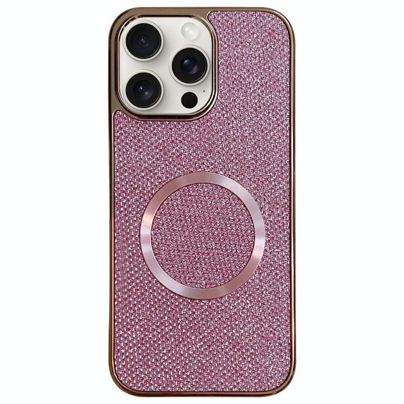 For iPhone 15 Pro Max Electroplating PC Glitter Grain MagSafe Phone Case(Pink)