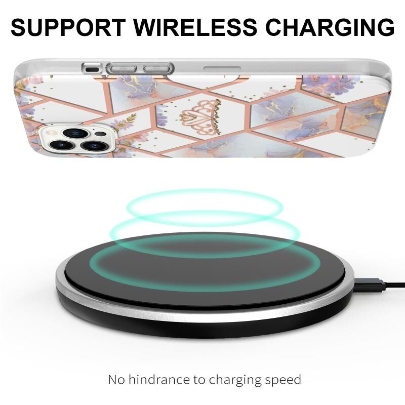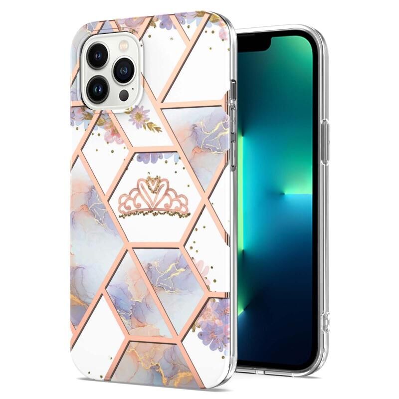Θήκη για iPhone 15 Pro Max με ηλεκτρολυτική επιμετάλλωση, συνδυασμό μαρμάρου και λουλουδιών, από TPU ανθεκτική στις κρούσεις (Crown)