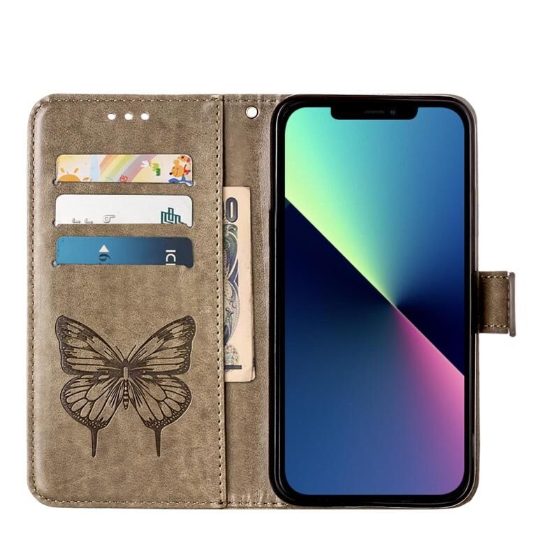 Θήκη τηλεφώνου από δέρμα με ανάγλυφο σχέδιο πεταλούδας για iPhone 15 Pro Max (Σκούρο Μωβ)