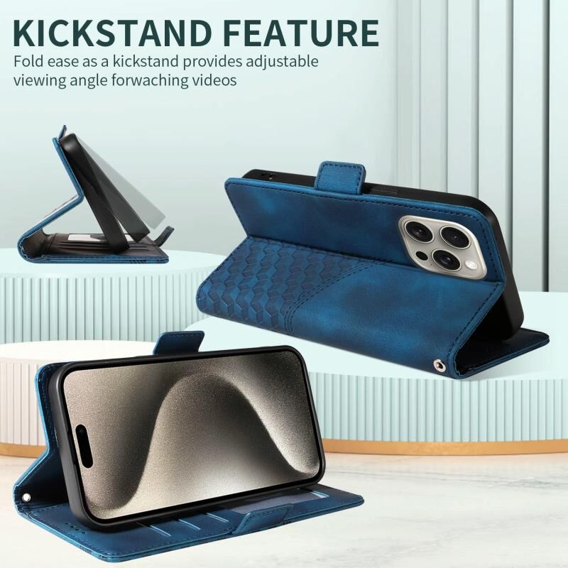 Θήκη τηλεφώνου από δέρμα με ανάγλυφο ρόμβο και αστρικό σχέδιο για iPhone 15 Pro Max (Μπλε)