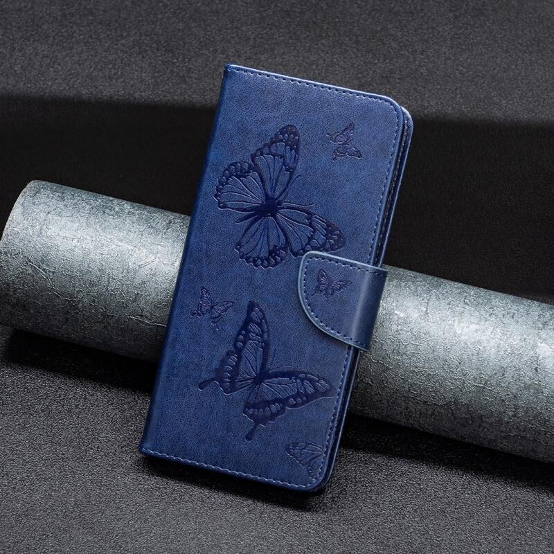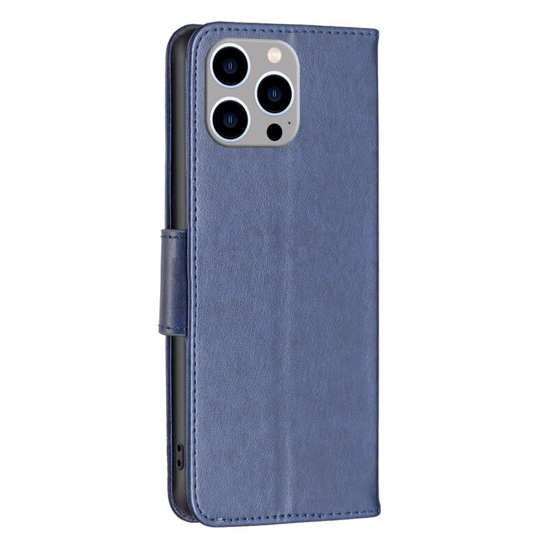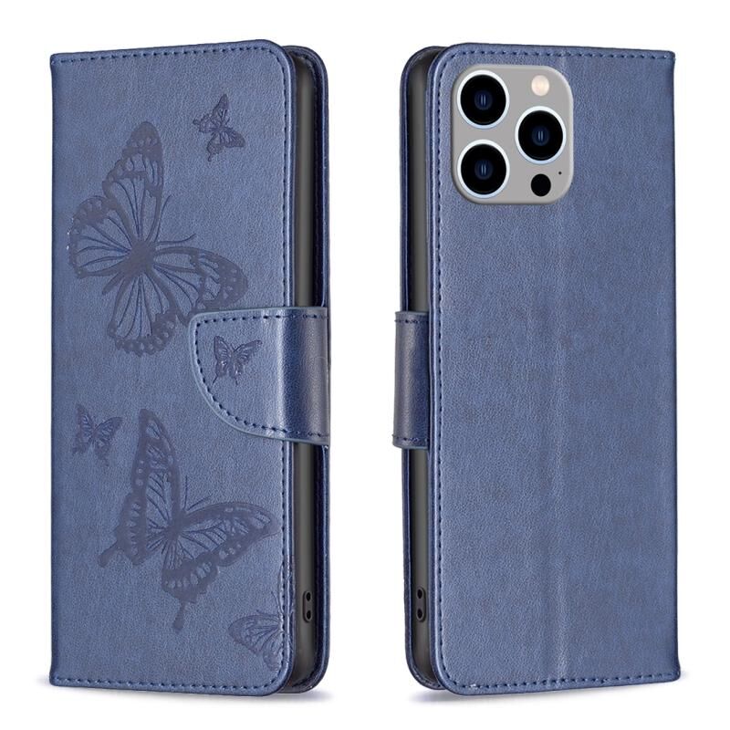 For iPhone 15 Pro Max Embossing Two Butterflies Pattern Leather Phone Case(Blue)