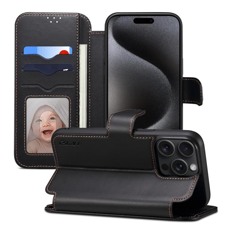 Θήκη τηλεφώνου δερμάτινη με υφή Nappa ESEBLE E1 για iPhone 15 Pro Max με MagSafe (Σκούρο Μπλε) (ESEBLE)