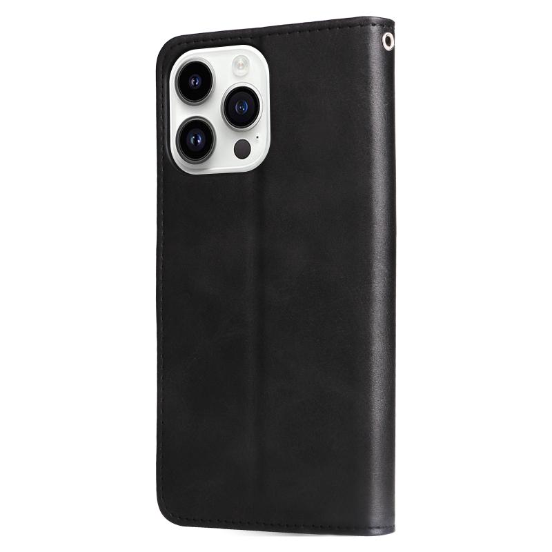For iPhone 15 Pro Max Fashion Calf Texture Zipper Leather Phone Case(Black)
