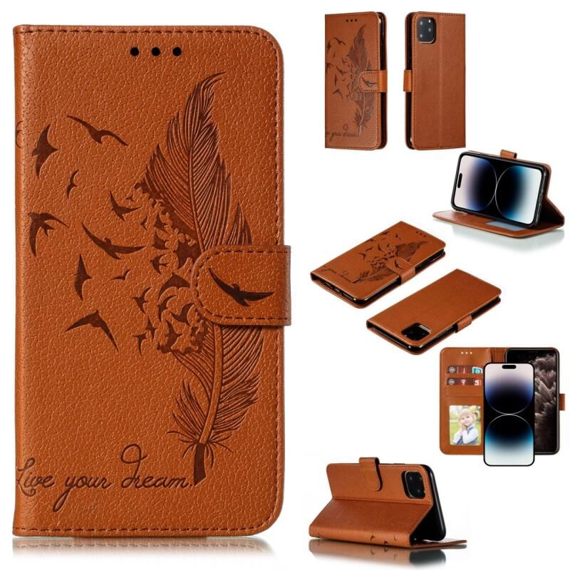 Θήκη τηλεφώνου από δέρμα με υφή λυτσί και σχέδιο φτερού για iPhone 15 Pro Max (Κόκκινο)