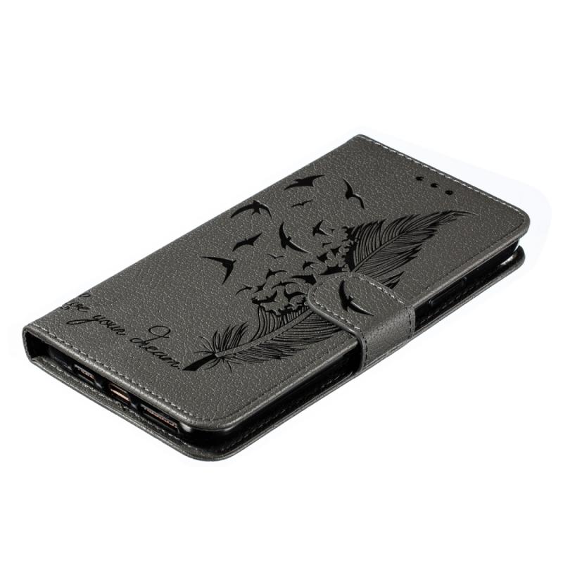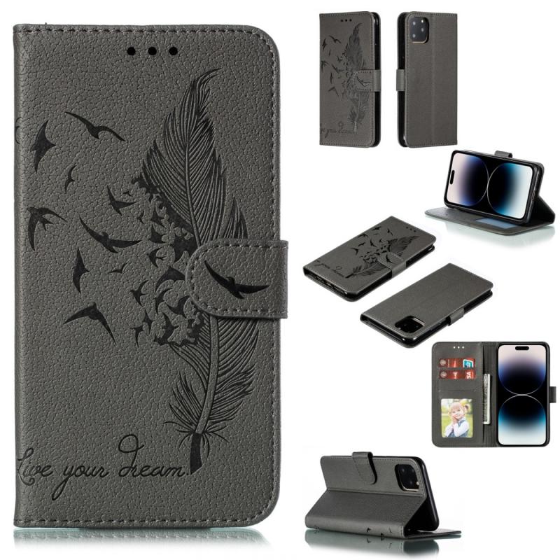 For iPhone 15 Pro Max Feather Pattern Litchi Texture Leather Phone Case(Gray)