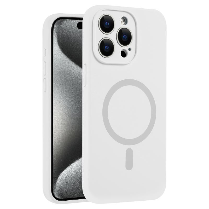 Θήκη τηλεφώνου MagSafe υγρής σιλικόνης καθαρού χρώματος με λεπτές οπές για iPhone 15 Pro Max (Λευκό)