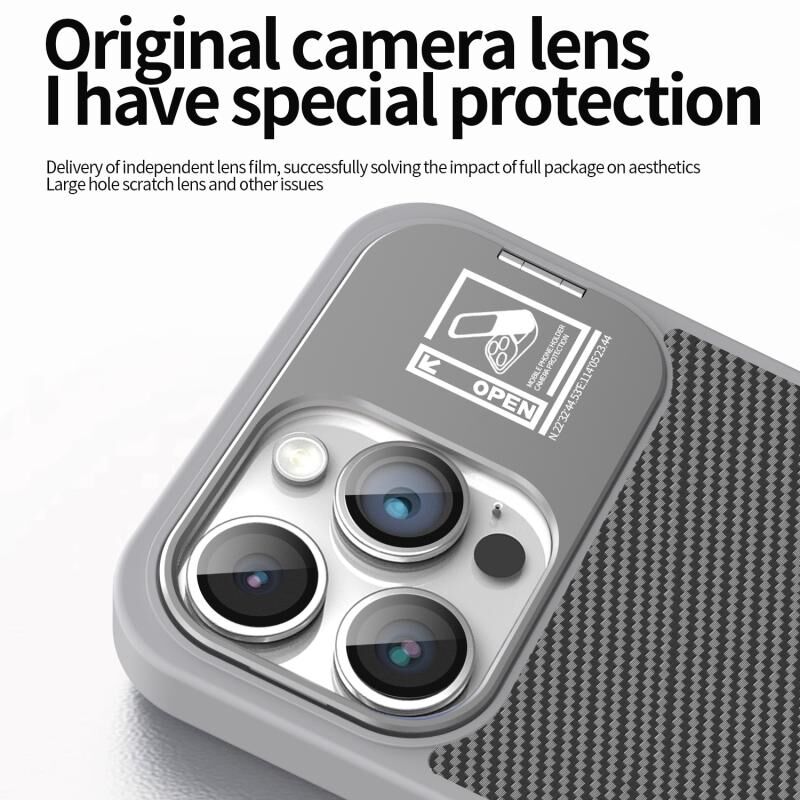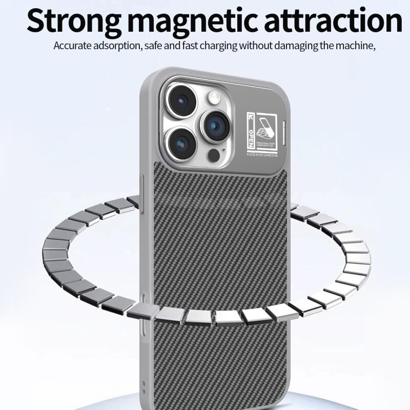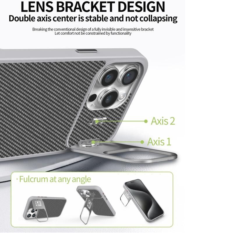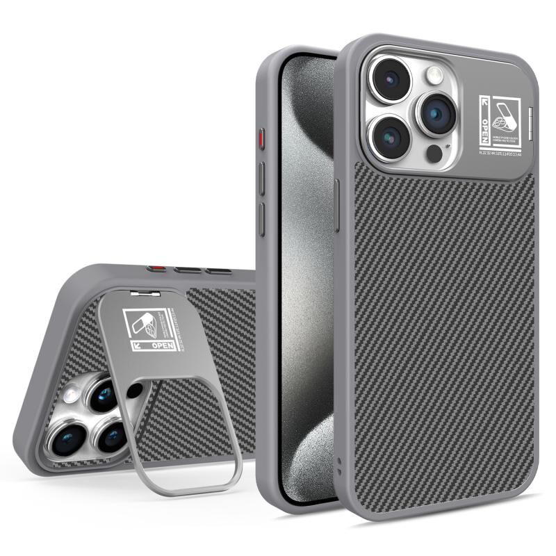 For iPhone 15 Pro Max Folding Holder Carbon Fiber MagSafe Phone Case(Grey)