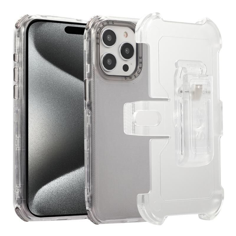 Θήκη τηλεφώνου για iPhone 15 Pro Max από ματ πολυανθρακικό + TPU με κλιπ στην πλάτη (Λευκό)
