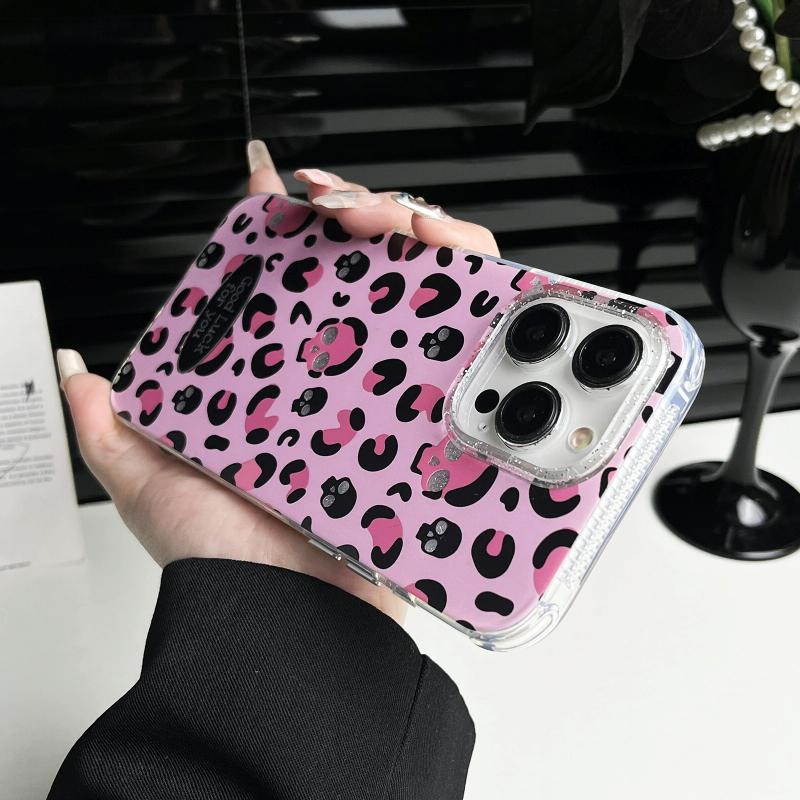 For iPhone 15 Pro Max Glitter Powder Leopard Print PC + TPU Phone Case(Pink)