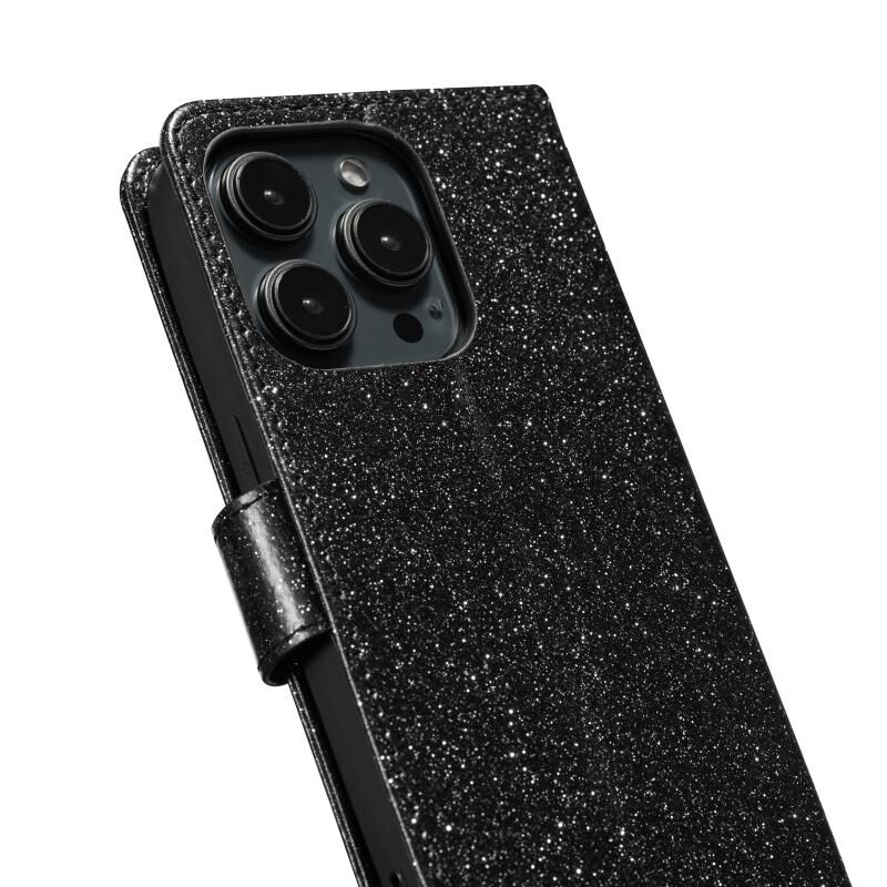 Θήκη τηλεφώνου από δέρμα με λάμψη και σκόνη γκλίτερ για iPhone 15 Pro Max (Μαύρο)