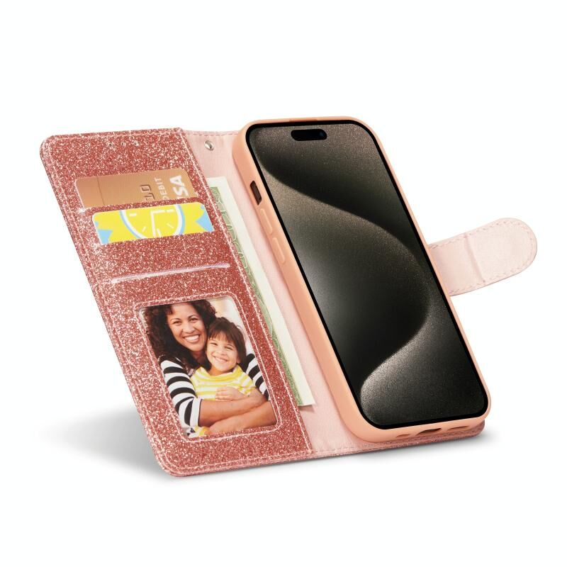 Θήκη τηλεφώνου από δέρμα με λάμψη και σκόνη γκλίτερ για iPhone 15 Pro Max (Μαύρο)