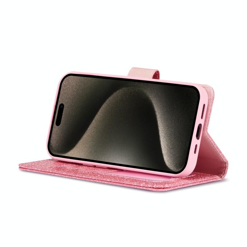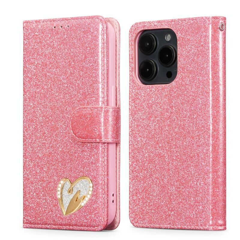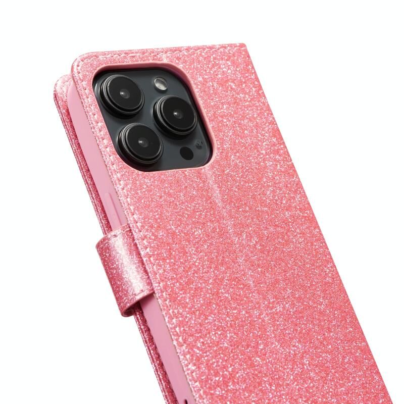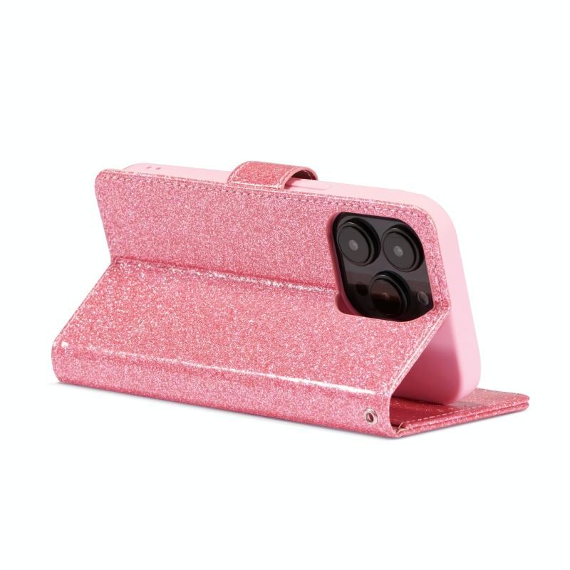 Θήκη τηλεφώνου από δέρμα με λάμψη και σκόνη γκλίτερ για iPhone 15 Pro Max (Μαύρο)