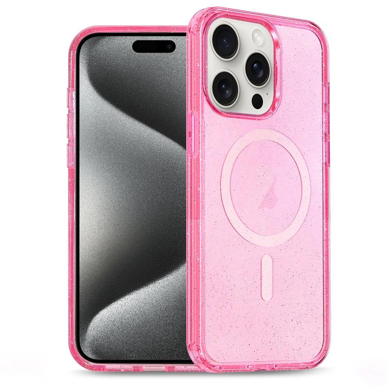 For iPhone 15 Pro Max Glitter Powder TPU Hybrid PC MagSafe Phone Case(Pink)