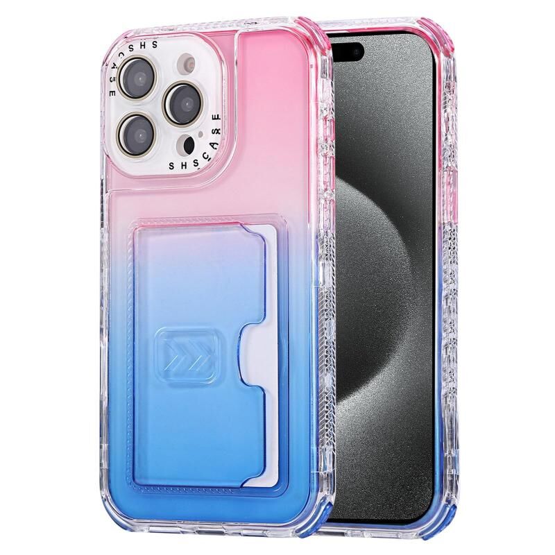 For iPhone 15 Pro Max Gradient Color TPU + PC Card Slot Full Coverage Phone Case(Pink Blue)