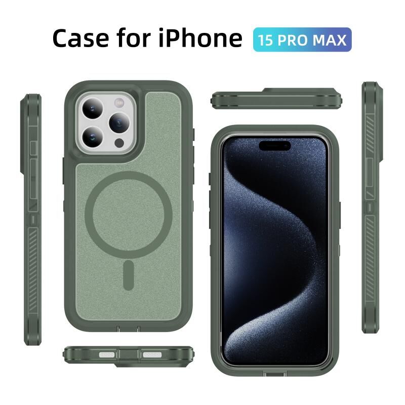 For iPhone 15 Pro Max Guard Magsafe Magnetic Ring Matte Phone Case(Green)