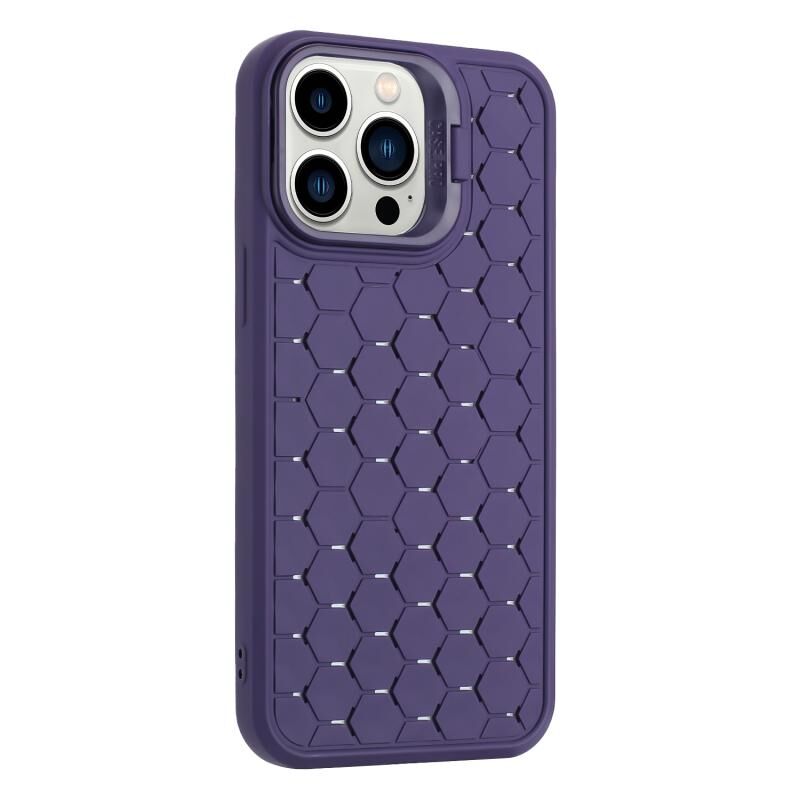 Θήκη τηλεφώνου TPU για iPhone 15 Pro Max με βάση φακού σε σχήμα κυψελωτού (Μωβ)