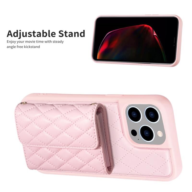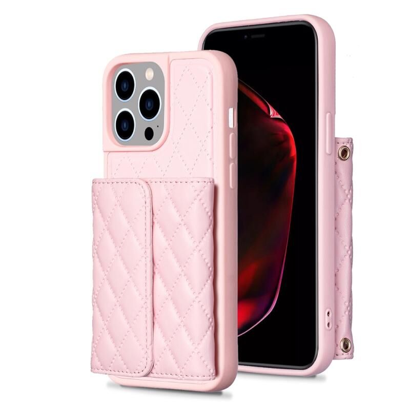 Θήκη τηλεφώνου από δέρμα με ρόμβους, οριζόντια θήκη πορτοφολιού για iPhone 15 Pro Max (Ροζ)