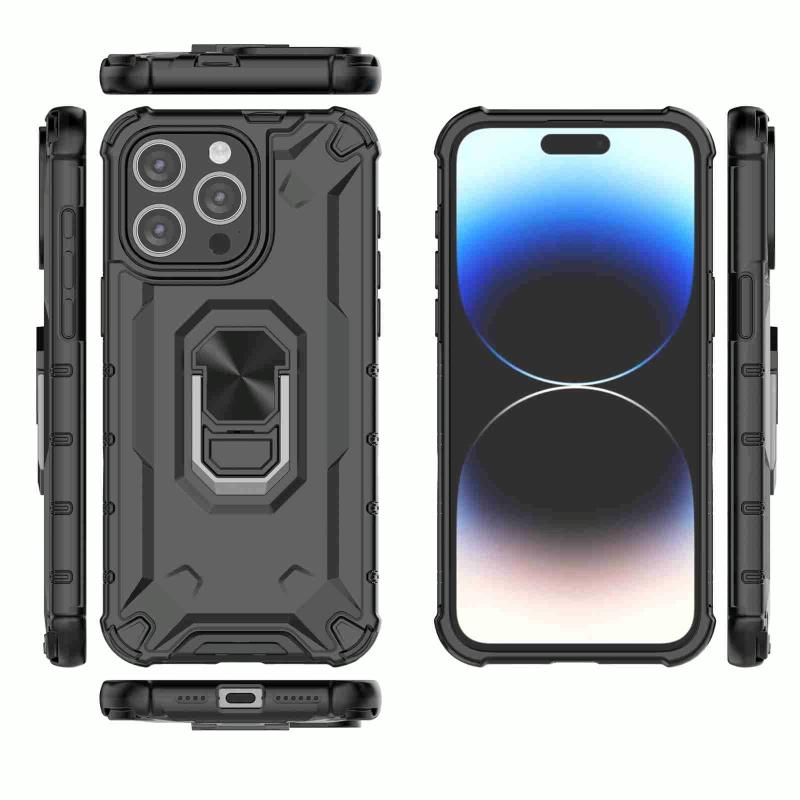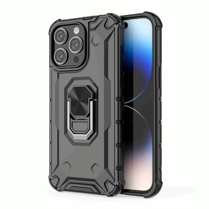 For iPhone 15 Pro Max Ice Armor Series Ring Holder Phone Case(Black)