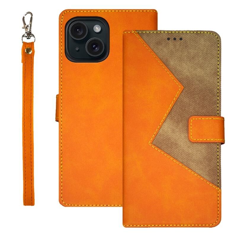 Θήκη τηλεφώνου δερμάτινη διχρωμίας idewei για iPhone 15 Pro Max (Μαύρο) (idewei)