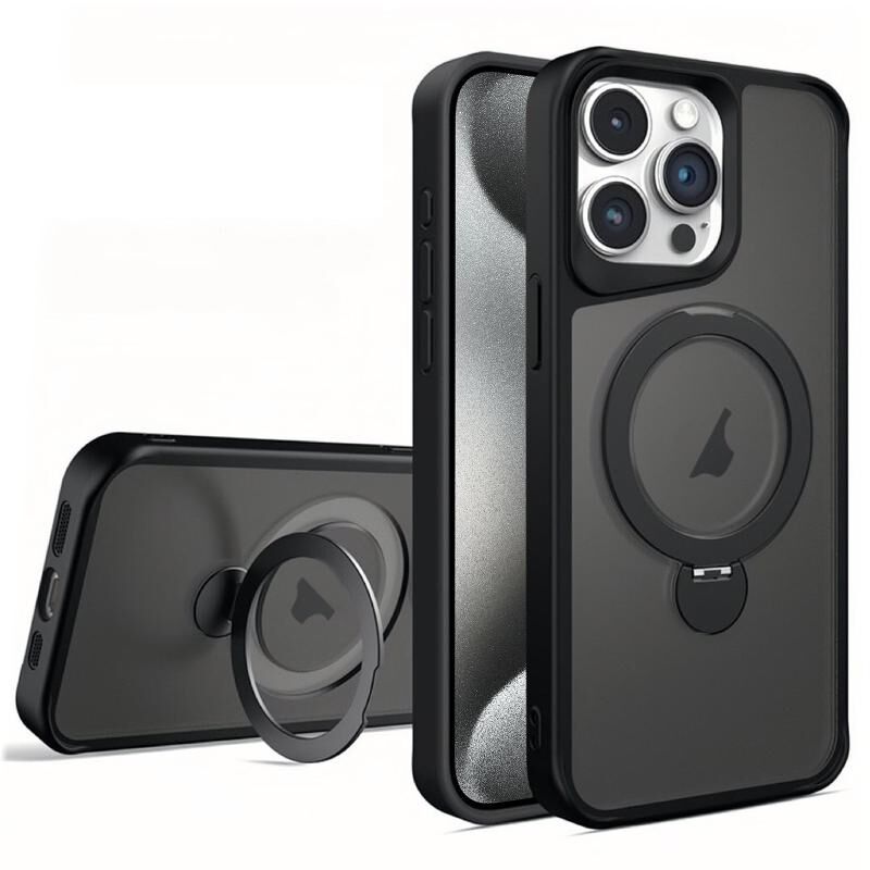 For iPhone 15 Pro Max Invisible Fulcrum Holder MagSafe Phone Case(Black)