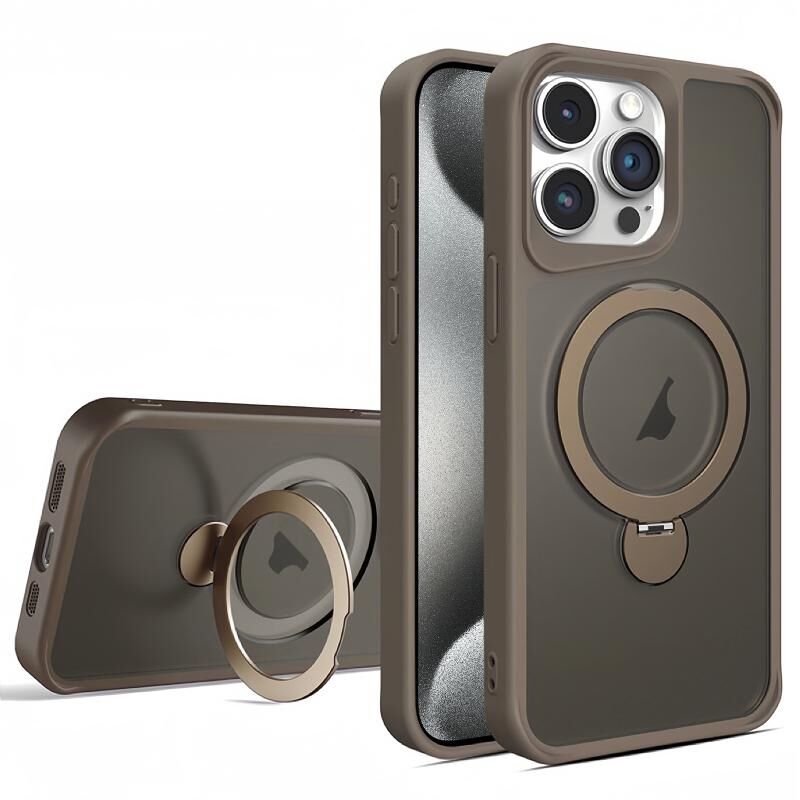For iPhone 15 Pro Max Invisible Fulcrum Holder MagSafe Phone Case(Coffee)