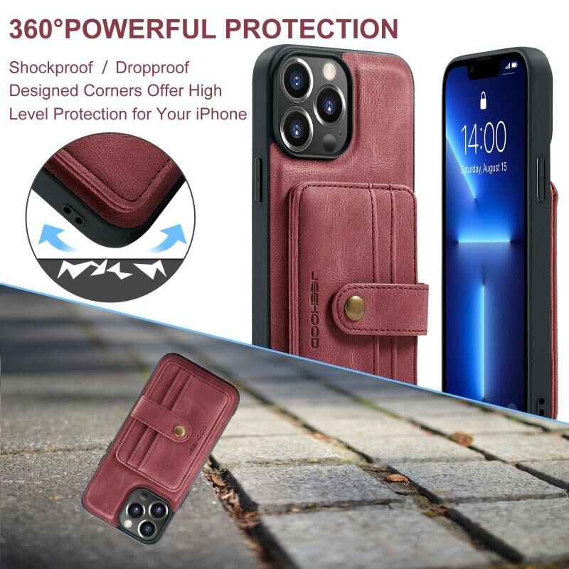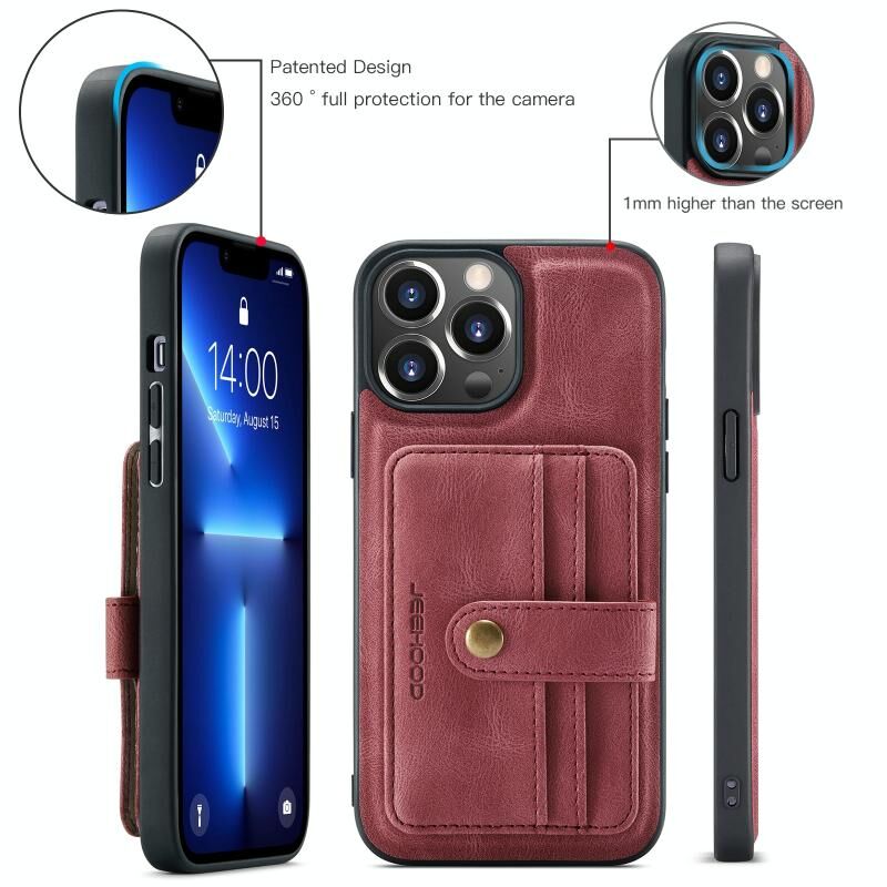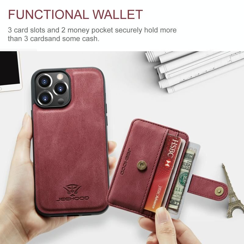 For iPhone 15 Pro Max JEEHOOD RFID Blocking Anti-Theft Magnetic PU Phone Case(Red) (JEEHOOD)