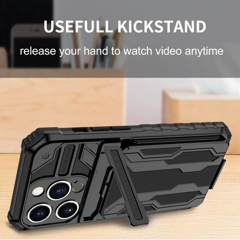 Θήκη για iPhone 15 Pro Max με βάση στήριξης, προστατευτική θήκη κάρτας (Μαύρο)