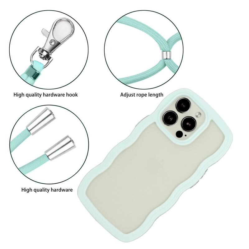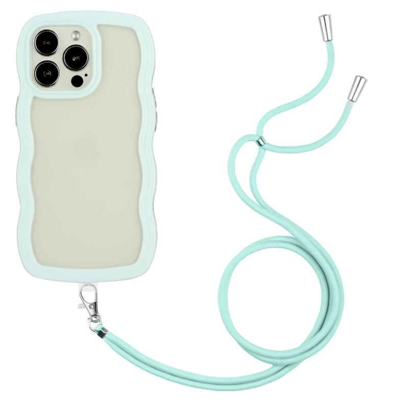 Θήκη τηλεφώνου για iPhone 15 Pro Max με κορδόνι, διαφανές TPU και PC σε χρώμα καραμέλας (κύμα) (πράσινο)