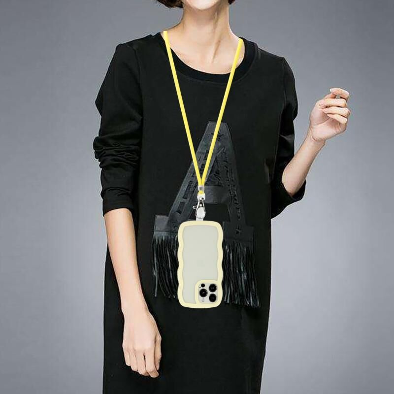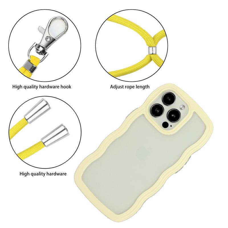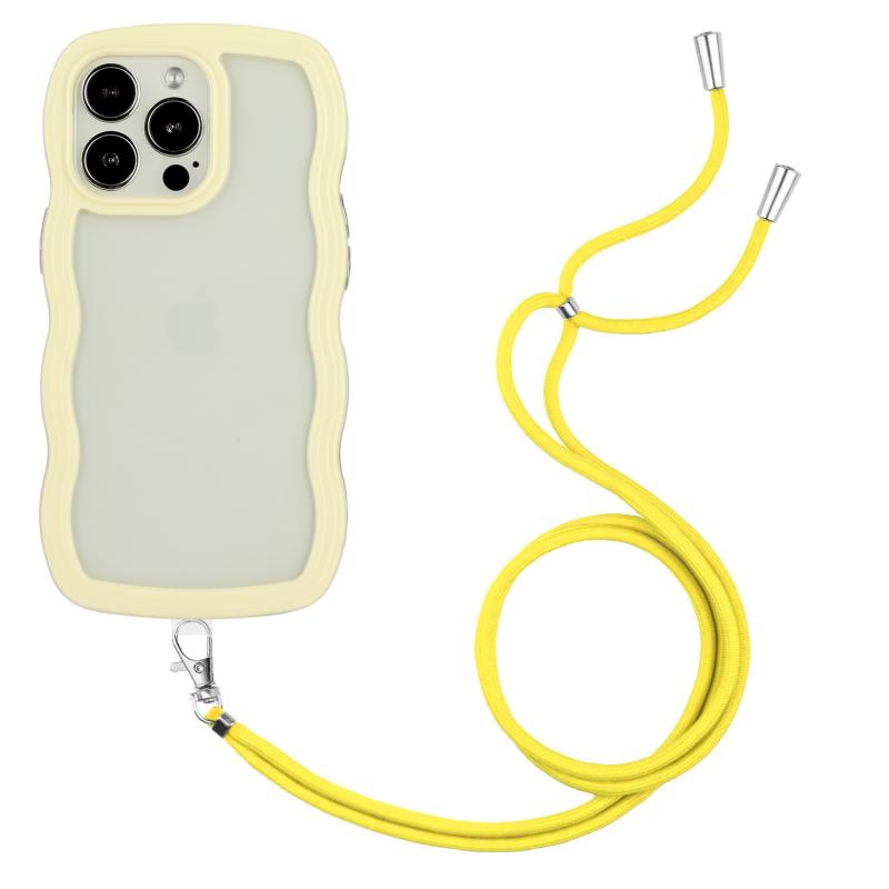 Θήκη τηλεφώνου για iPhone 15 Pro Max με κορδόνι, διαφανές TPU και PC σε χρώμα καραμέλας (κύμα) (Κίτρινο)