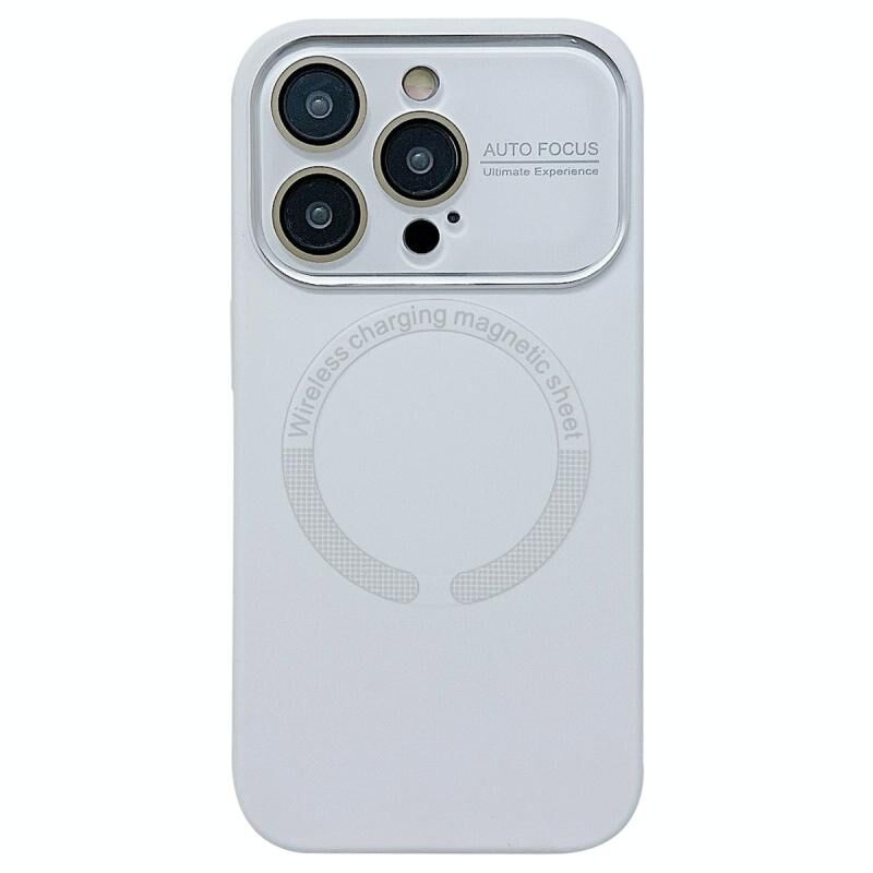 Θήκη τηλεφώνου MagSafe από σιλικόνη με ακρυλικό γυαλί φακού και μεγάλο παράθυρο για iPhone 15 Pro Max (Αντίκα Λευκό)