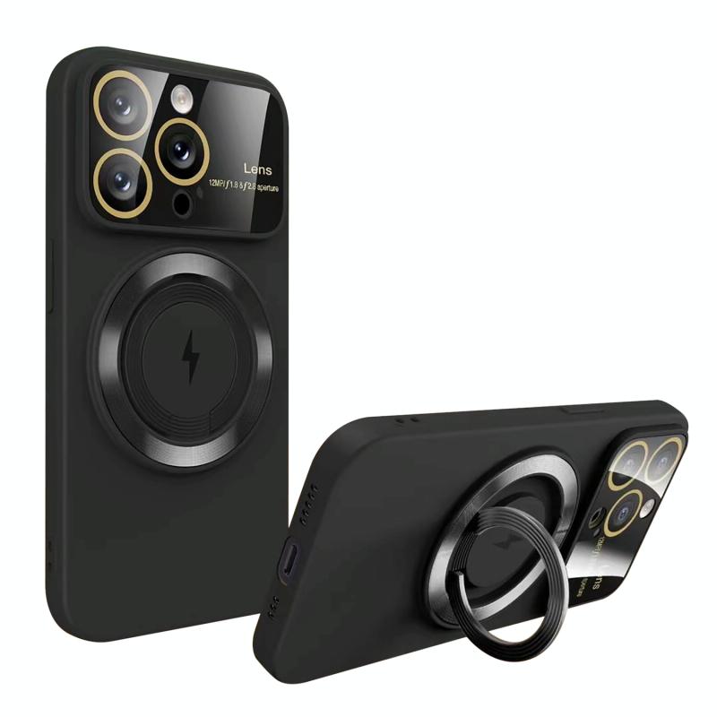 For iPhone 15 Pro Max Large Window MagSafe Magnetic Holder Phone Case(Black)