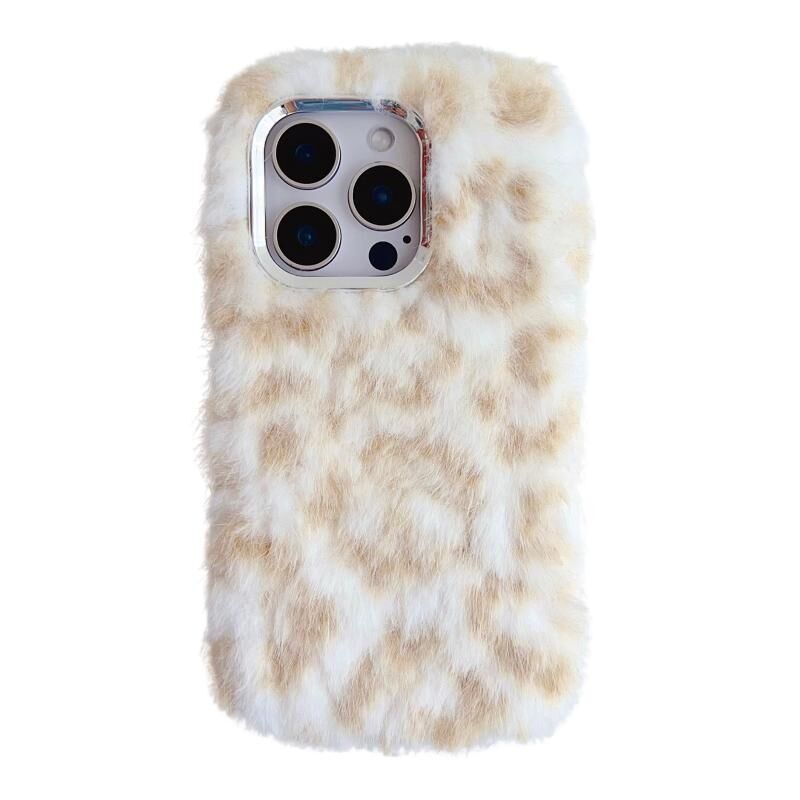 For iPhone 15 Pro Max Leopard Print Plush TPU Phone Case(Light Yellow)