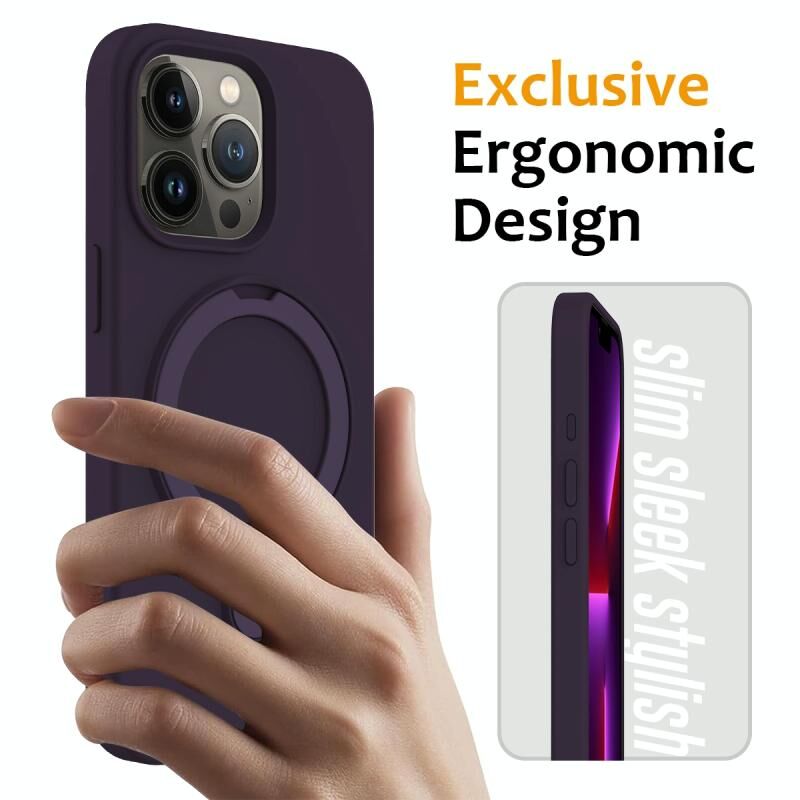 Θήκη τηλεφώνου με μαγνητική σύνδεση MagSafe από υγρή σιλικόνη για iPhone 15 Pro Max με δακτύλιο στήριξης (Λευκό)