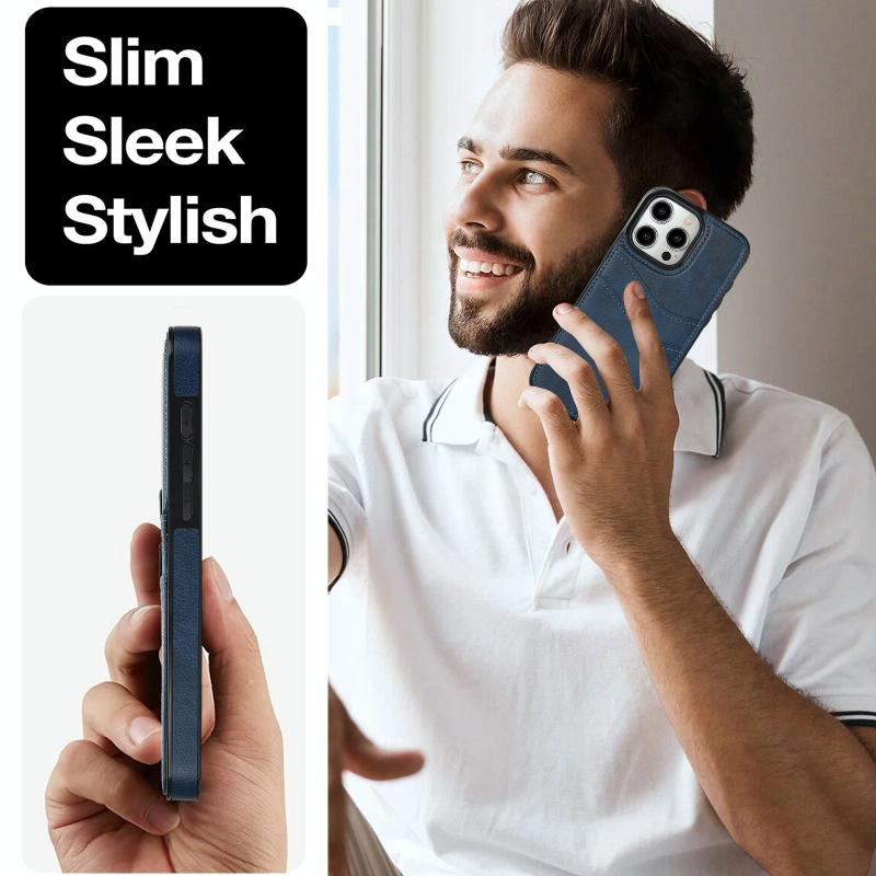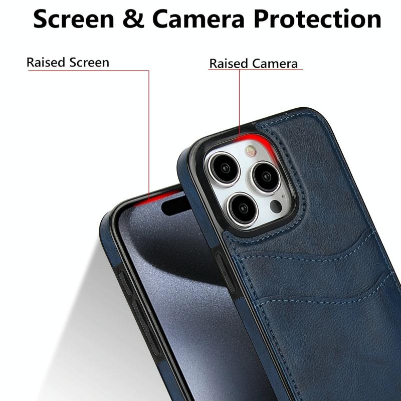 Θήκη τηλεφώνου με κάρτες από δέρμα Litchi για iPhone 15 Pro Max (Μπλε)