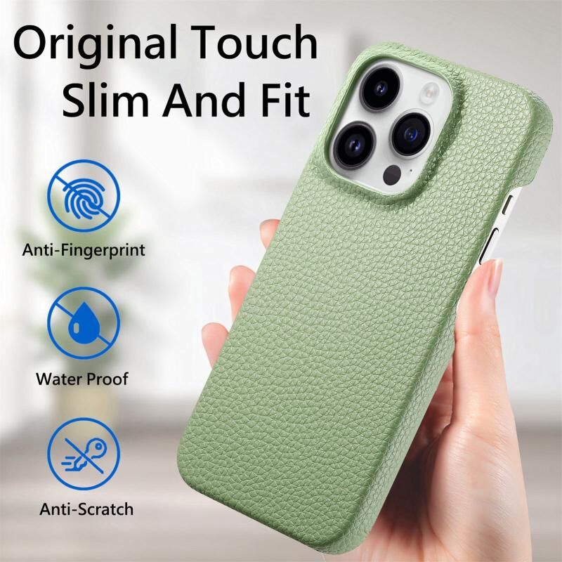 Θήκη τηλεφώνου από δέρμα με επεξεργασία λαδιού Litchi για iPhone 15 Pro Max (Πράσινο Τσάι)