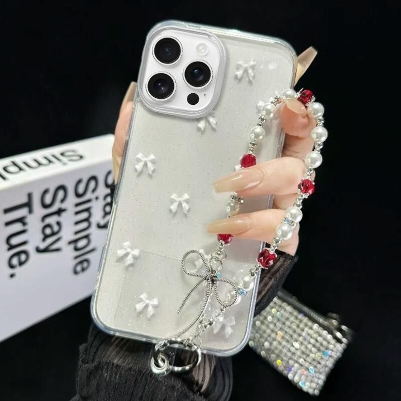 Θήκη τηλεφώνου TPU με αλυσίδα βραχιολιού και φιόγκο για iPhone 15 Pro Max (Μαύρο)