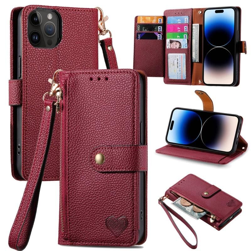 Θήκη τηλεφώνου από δέρμα με κορδόνι και φερμουάρ για iPhone 15 Pro Max (Κόκκινο)