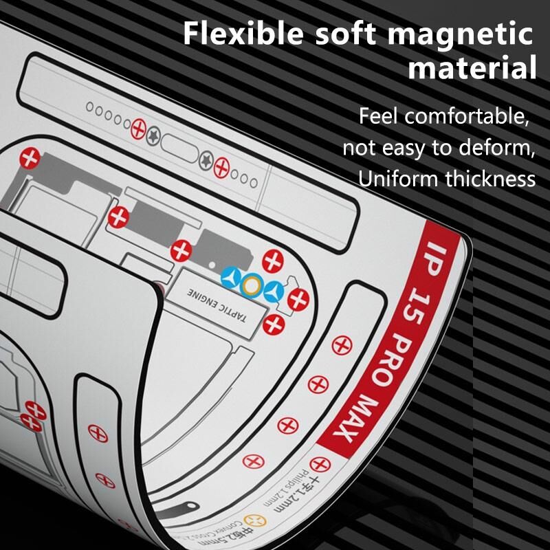 1. Screw positioning with magnetic pad, double-sided screw positioning, flexible soft magnetic material, icon recognition induction