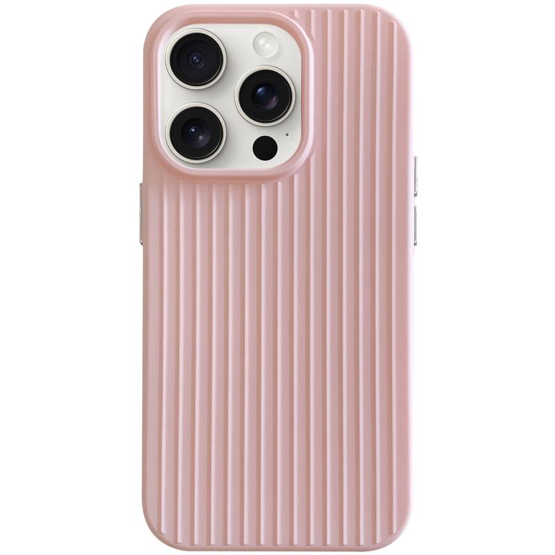 For iPhone 15 Pro Max Macaroon Tile Stripe TPU Hybrid PC Phone Case(Pink)