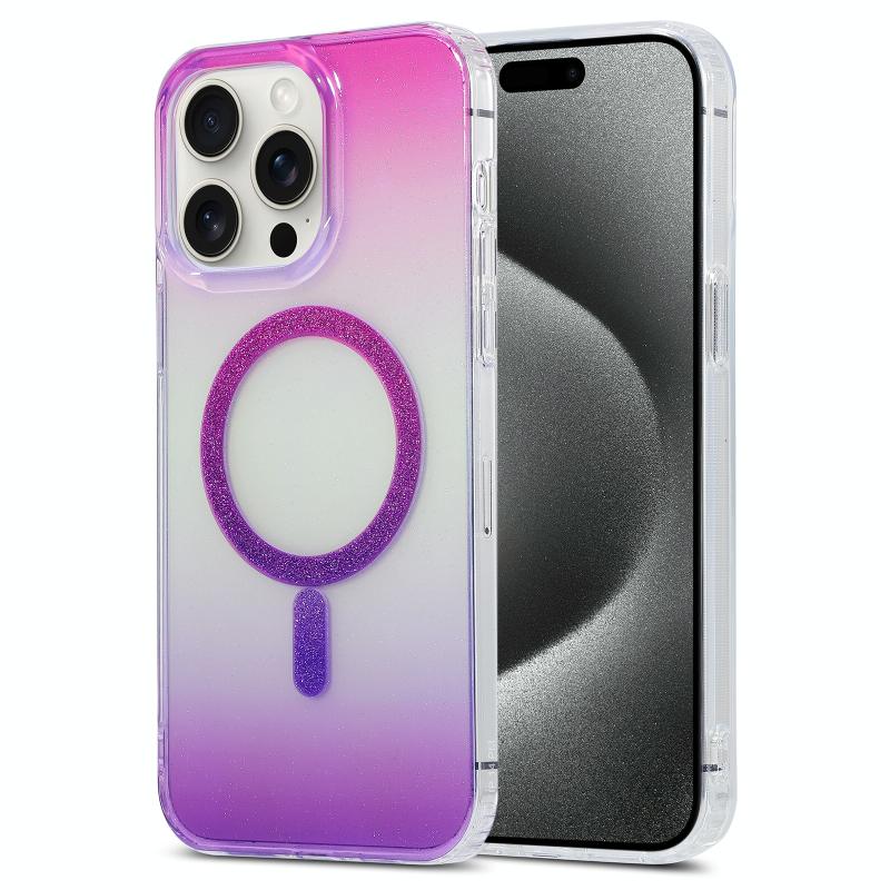 For iPhone 15 Pro Max Magic Diamond Blu-ray MagSafe Phone Case(Red Purple Gradient)