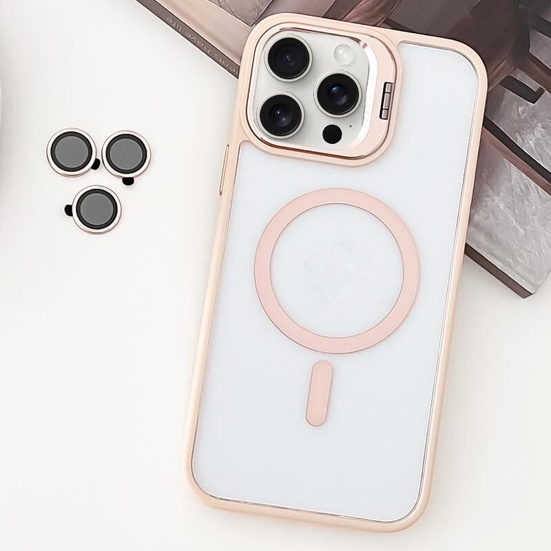 Θήκη τηλεφώνου για iPhone 15 Pro Max με υβριδικό υλικό TPU και ακρυλικό, με προστασία φακού (ρόζ)