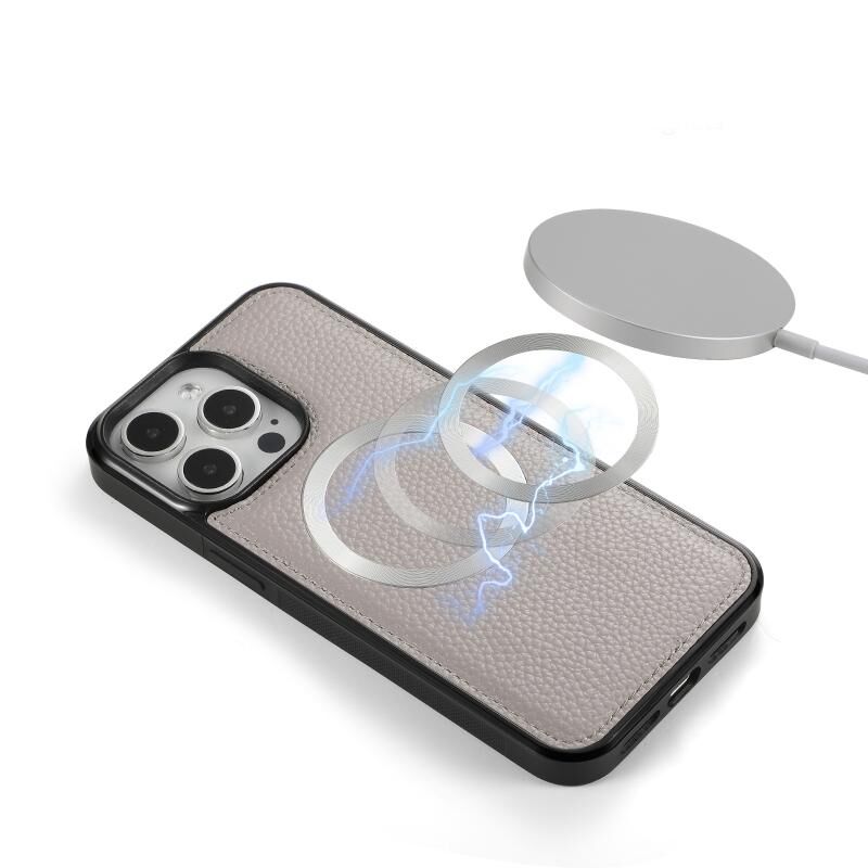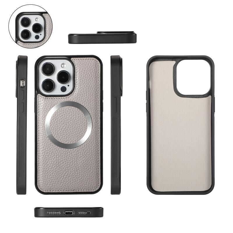 Θήκη τηλεφώνου για iPhone 15 Pro Max MagSafe Crossbody, πολυλειτουργική με φερμουάρ και δέρμα Lychee (Λευκό)